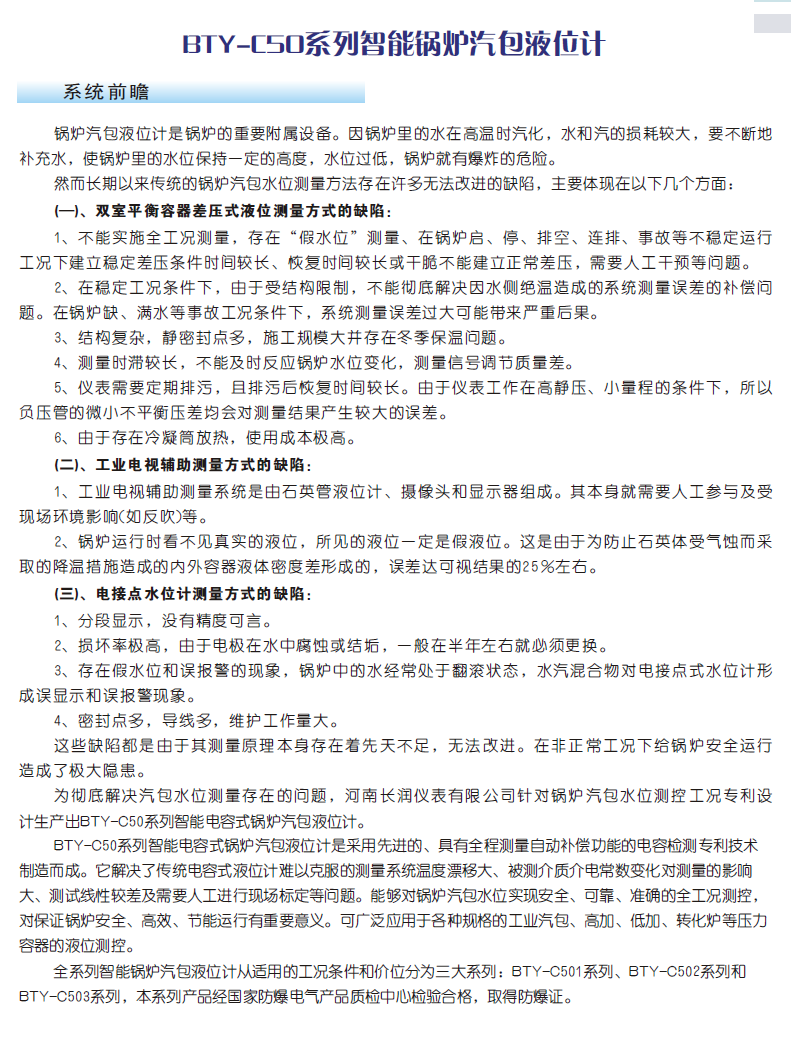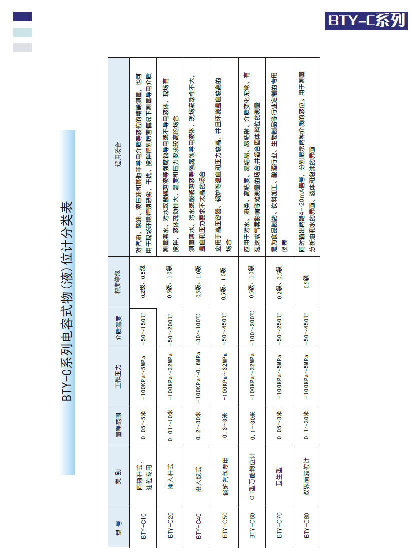 BTY-C系列電容式物位計(jì)采用一種基于全數(shù)字化電容測量方法,并運(yùn)用多參數(shù)補(bǔ)償技術(shù),研制出一系列高精度的物位計(jì),已經(jīng)在多個(gè)領(lǐng)域試用成功。例如安裝在機(jī)動(dòng)車輛上的電容式油位傳感器,在各種強(qiáng)腐蝕、高溫、劇毒、爆炸等高危險(xiǎn)場合使用的電容式高溫高壓液位計(jì),能自動(dòng)適應(yīng)各種介質(zhì)的高精度CT型物位計(jì)。這些物位計(jì)在有關(guān)行業(yè)試用,得到了有關(guān)行家的一致好評(píng)。